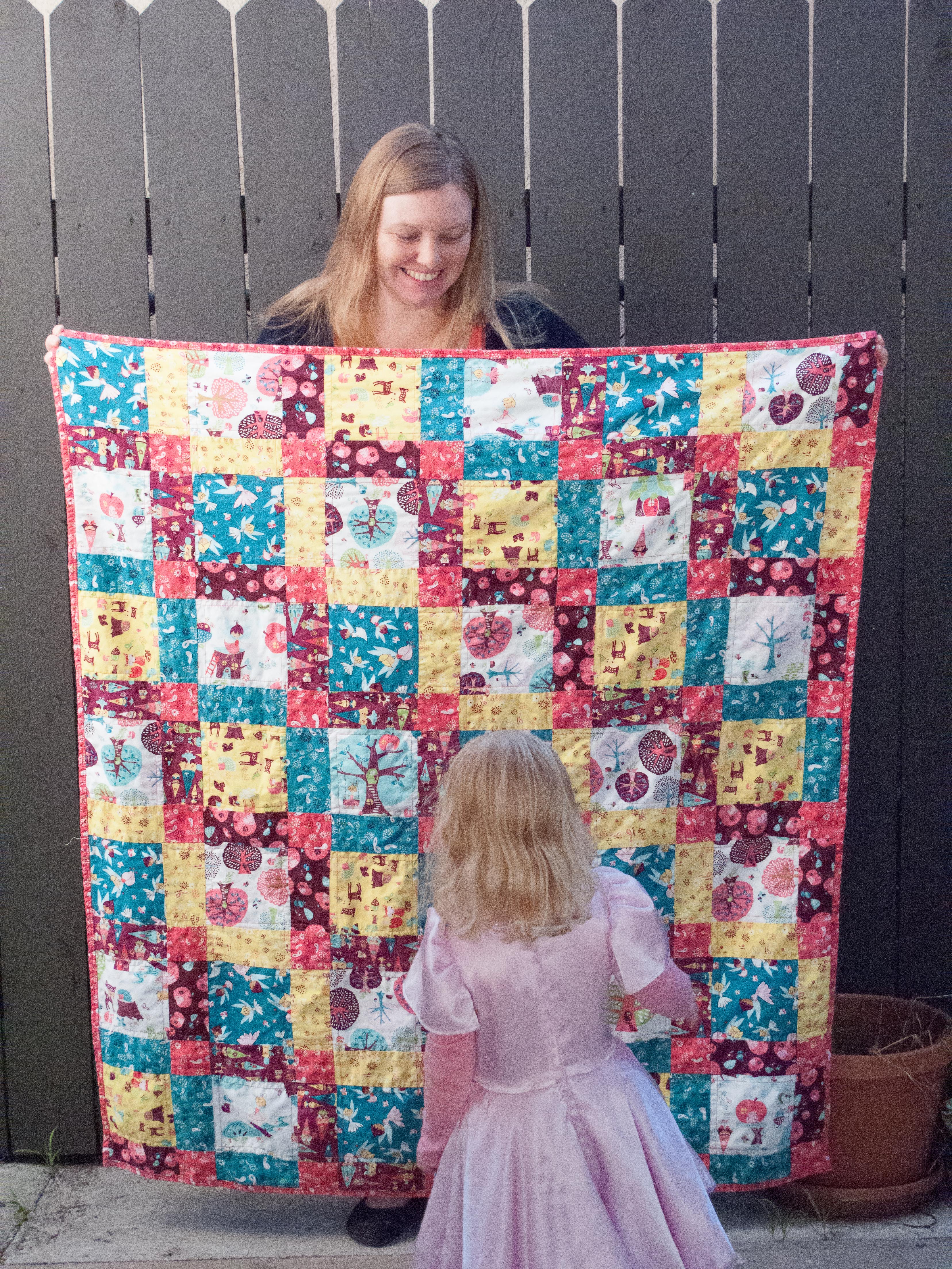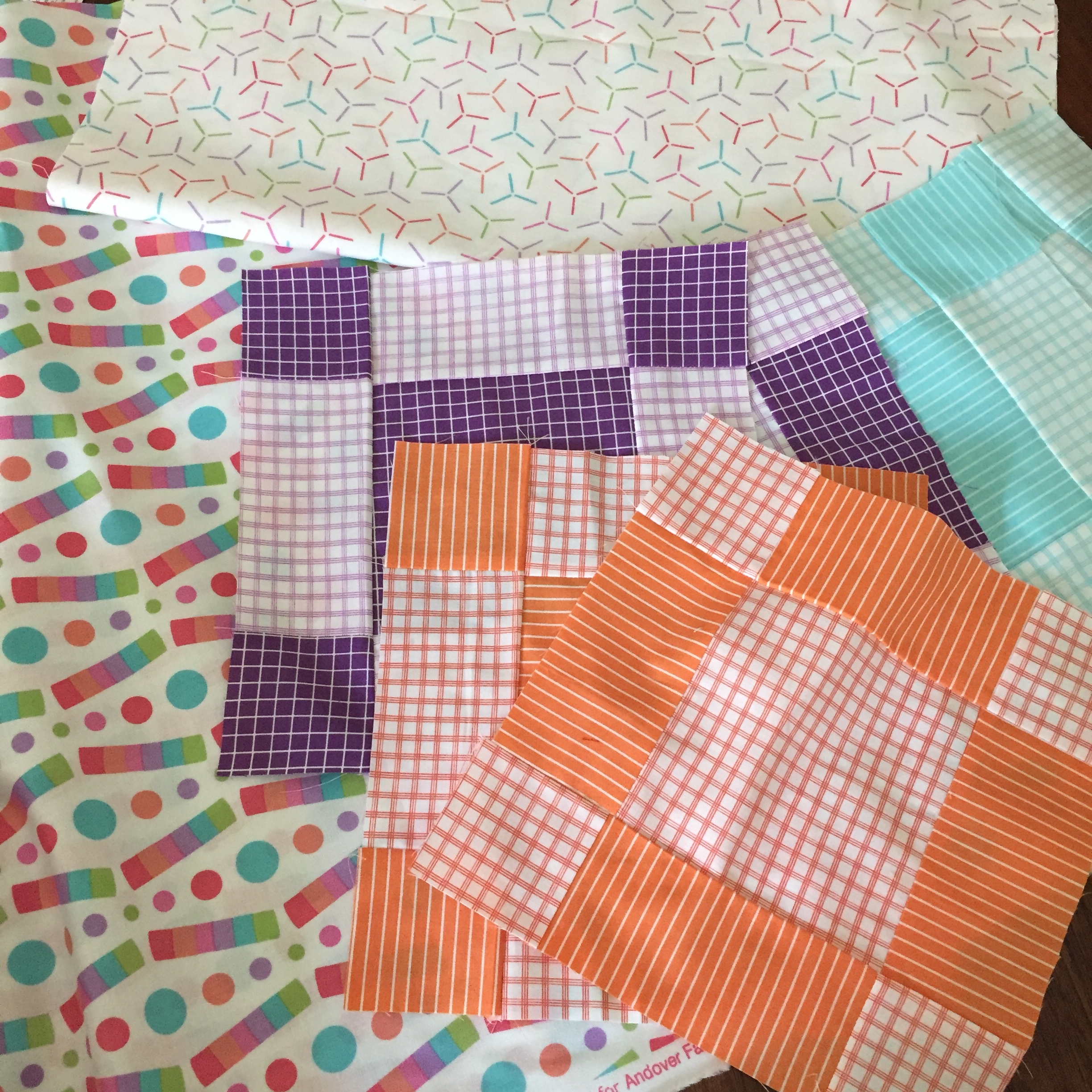 This week I feel like nothing is going quite right. Our three month old has only been taking cat naps, so I haven’t had much time to work on my projects. My Story Time Sampler hasn’t made much progress. I tried to make a dress to fit my postpartum shape and it was a miserable fail (more on that later). But I did get this beautiful quilt top pinned into its batting/backing sandwich today so tomorrow I can start quilting it all together…if I can pick a pattern.