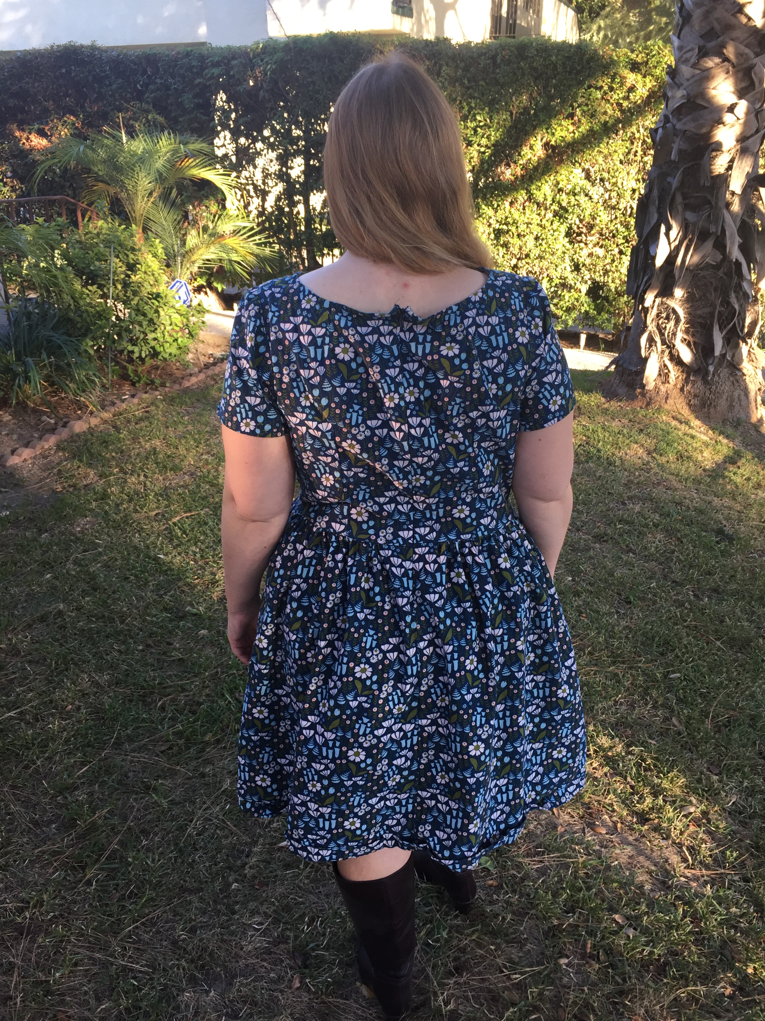 I tried looking for more Christmas-y fabric online, but I never did find something that seemed right. So I went stash diving and found a remnant of the blue floral and a 4 yard cut of the green floral. It would have been nice to use the same fabric for both, but the scale of the green floral was too big for Charlie’s tiny bodice piece and I didn’t have enough of the blue for both. Oh well, similar is close enough for me! Lu wasn’t super thrilled with a dark green dress, but I sold her on the little pink and red flowers in the print.