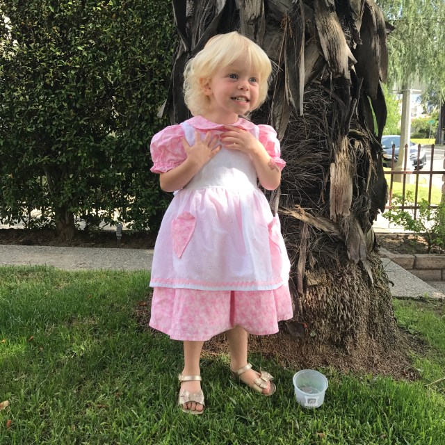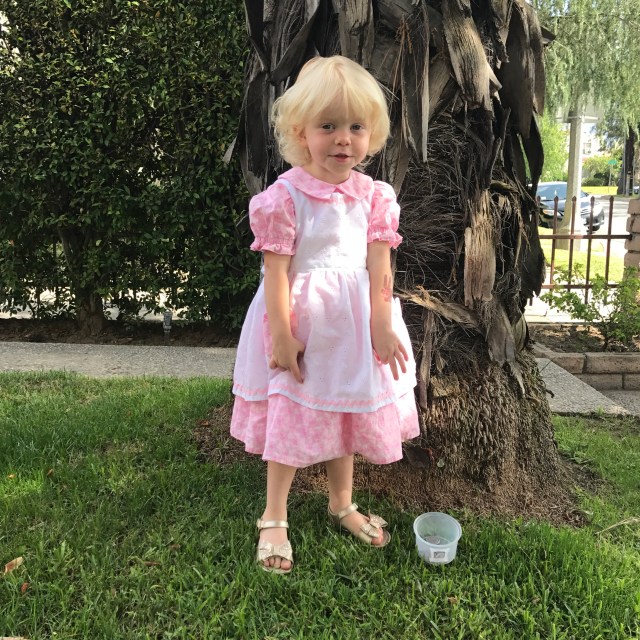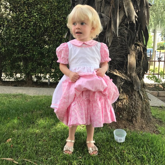 Lu was a total ham in this dress. I think she liked it quite a lot, but she really loved those shoes! Too bad they broke on the third wearing and had to be returned 😦 The belt was also a huge hit. I had no idea such an accessory could bring so much joy to a child.